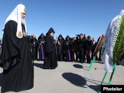 Earlier this month, Turkey withdrew its ambassadors to Washington and Stockholm after the U.S. House Foreign Affairs Committee and the Swedish parliament passed the nonbinding resolutions. Parliaments in several other countries have also recognized the killings as genocide in the past. One is Russia, whose Orthodox Patriarch Kirill laid wreaths at Yerevan's Armenian Genocide Monument today and delivered commemoration services in the victims' memory.