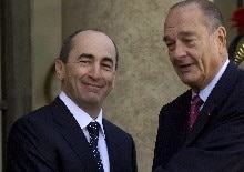 French President Jacques Chirac (right) greets Armenian President Robert Kocharian at the Elysee Palace in Paris, January 2006 (epa)