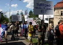 Citizens in Prague, the Czech Republic, demonstrate in June against Turkish entry into the EU (RFE/RL)