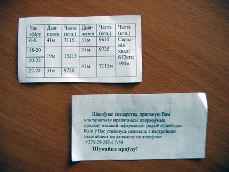 Shulzhytski also included his phone number on his ads, asking potential listeners to get in touch with him if they have problems tuning in to the broadcasts.
