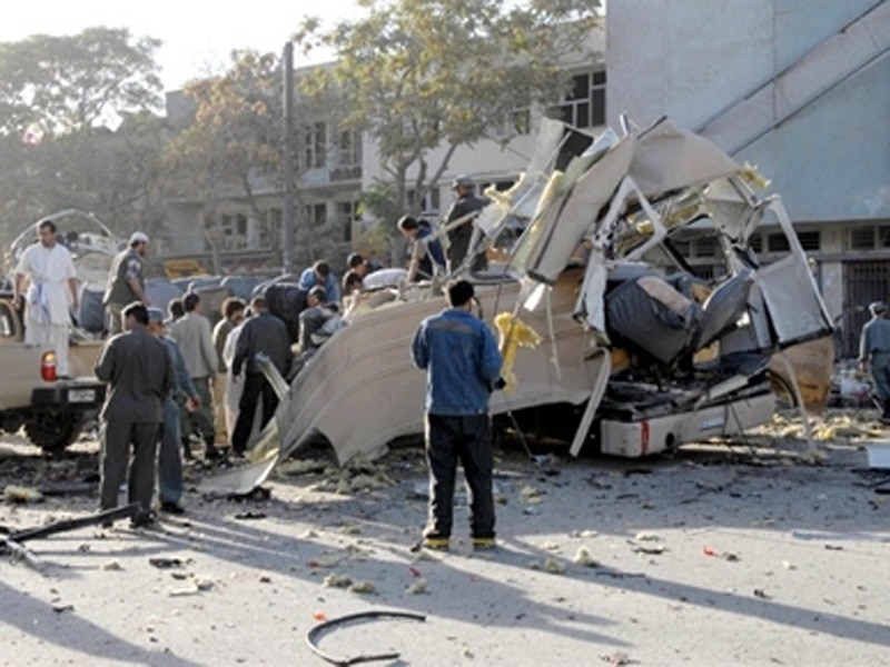 The attack occurred early this morning when a suicide bomber wearing an Afghan army uniform set off a huge explosion while trying to board a bus carrying as many as 50 Afghan soldiers.