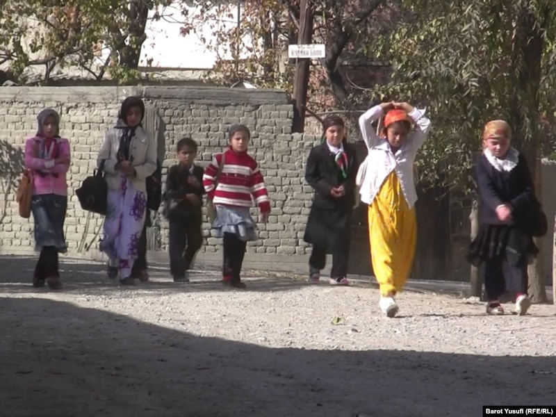 Despite a government ban on head scarves, girls wear the hijab along with their compulsory school uniforms in Chorkuh.