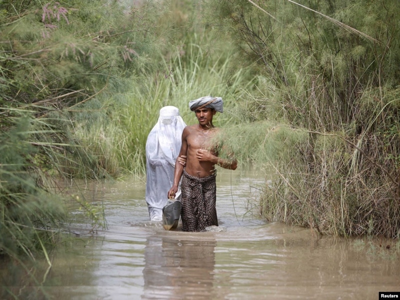 A woman in the northwest region who has been trapped by the flooding told RFE/RL's Radio Mashaal, "We have been stranded here for the past 10 days. There is no food, nothing. Whatever food was available is gone now. We have eight children with us. There is nothing left [even] for the children, and the medicine that was here has also been used up."