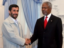 3 September 2006 -- Visiting UN Secretary-General Kofi Annan says President Ahmadinejad reaffirms that Tehran wants to find a negotiated solution to its nuclear standoff with the world but also rejects any suspension of its uranium-enrichment program prior to talks.